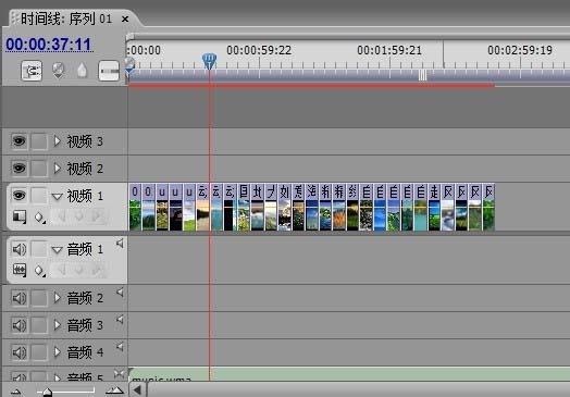 3、删除不用的轨道。再将图片和音乐都拖到时间线中