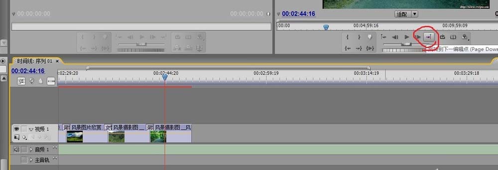 5、将播放磁头拖动到最后一张图片上,点击【跳到下一编辑点】