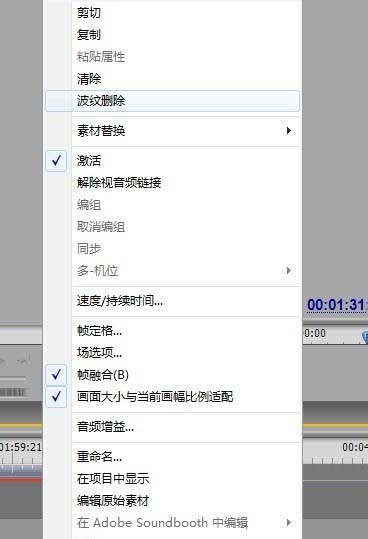 7、选中不要的音乐素材,右击鼠标选择【波纹删除】(如果图片和音乐是同一时间结束的,就不用删了)
