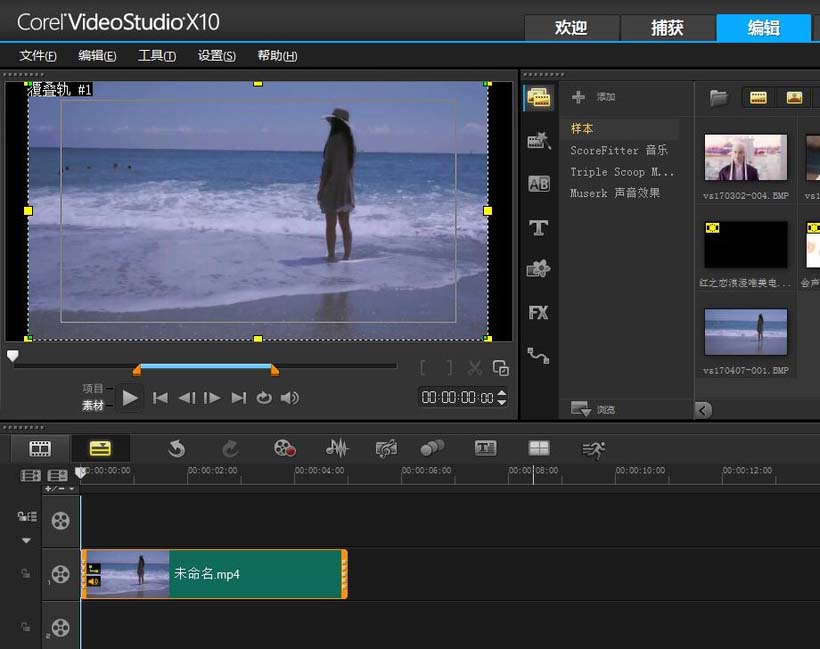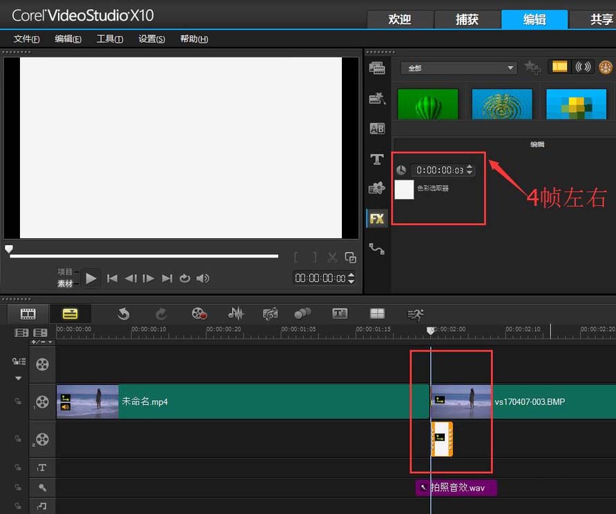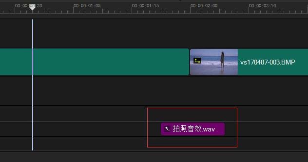 4、然后,下载拍照音效,将音效放在视频和图片中间,这样最简单的拍照效果就完成了(一定要加上音效,这样才有效果)。