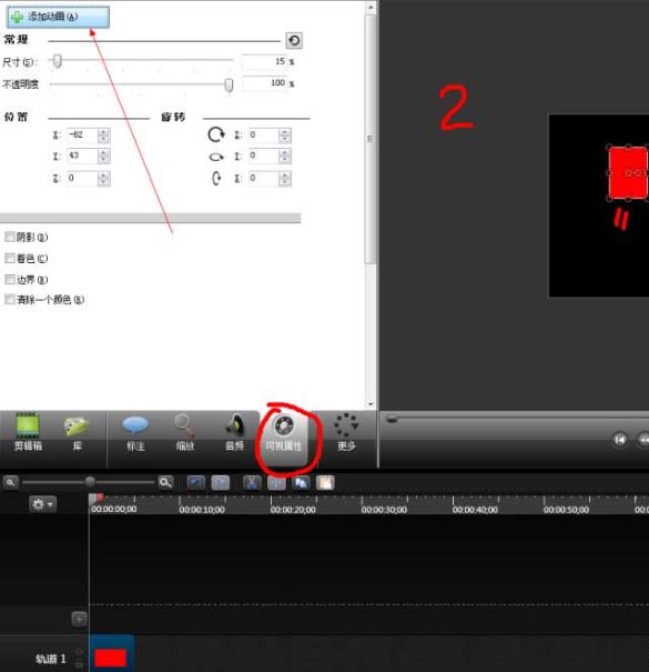 2、选择“可视属性”,选择添加的标注,点击“添加动画”;