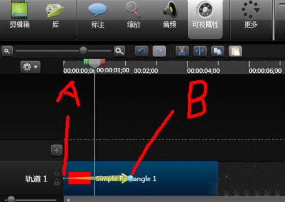 6、设置第二个方块的动画,从左到右,注意,Y坐标不变,X坐标从A到B点,是变大的。