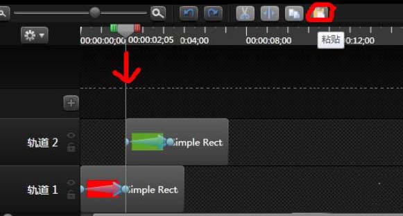 5、在第一个动画结束点B处,贴粘,如下图;