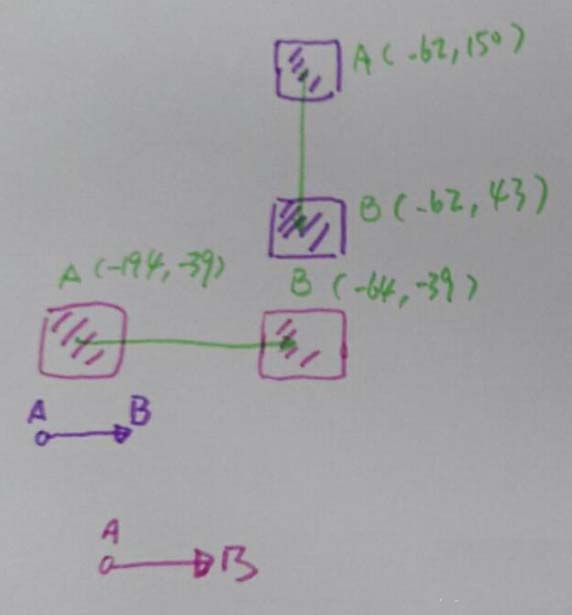 3、注意动画两个关键点:起点A和终点B;设置A点的坐标为Y=154,x=-62 , 设置B点的坐标为Y=43,x=-62。它是一个位移动画;