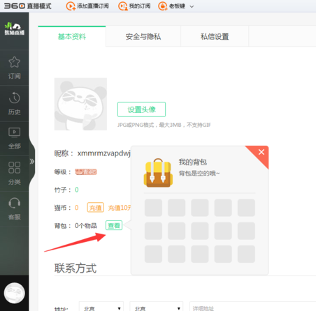 2、我们可以在“个人信息”中的“背包”查看拥有的道具。