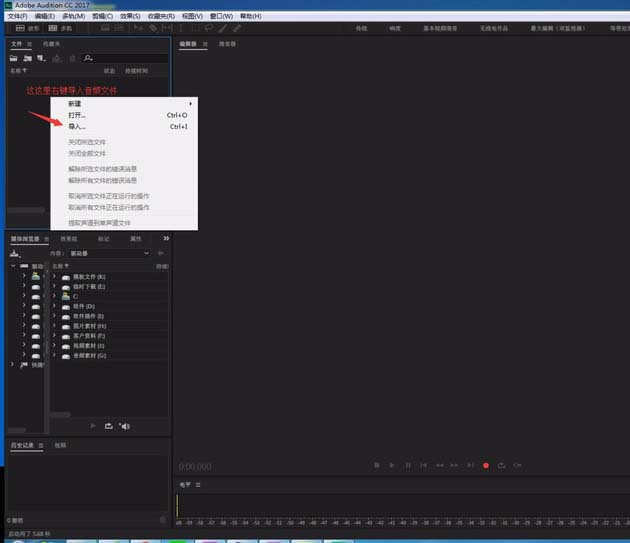 1、首先打开Audition软件,如图所示导入准备好的音频素材。