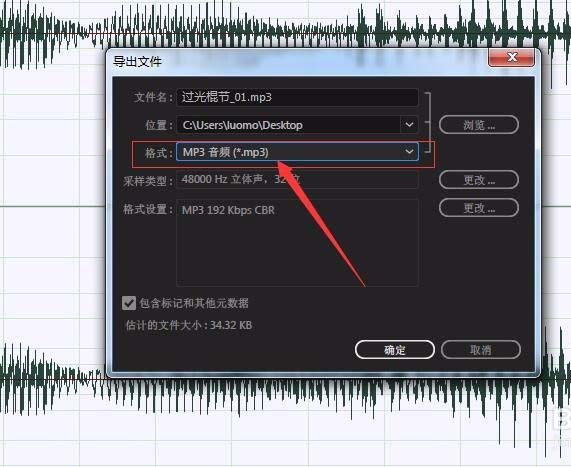 8、在弹出的对话框中选择导出的格式存放位置和保存名称。选择好之后就可以点击确定进行导出了。