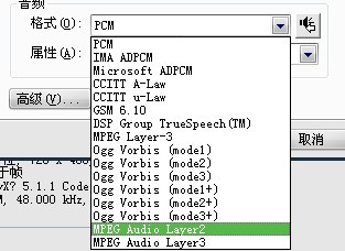 我们选择 mpeg audio layer 2 这个是 mp2 = = 我是这么理解的 和mp3其实差不多