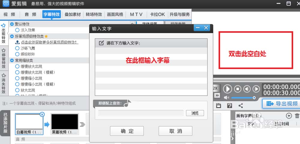 2、双击右上区域,弹出文字框,输入字幕。如图: