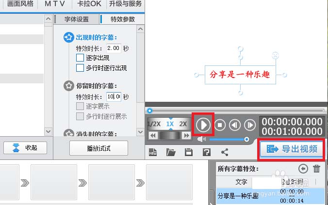 6、点击播放观看效果,如果满意,导出视频,大功告成。