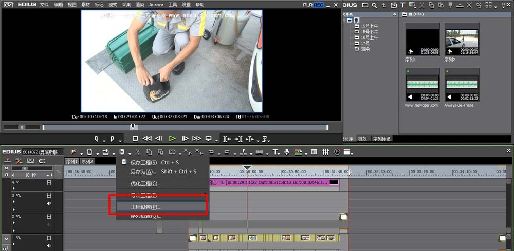 1、当我们遇到无法输出的时候,我们要去时间线上面的“工程设置”里面寻找解决办法。位置如图。