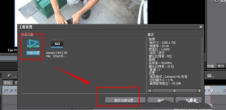 2、进入“工程设置”的预设列表,然后点击“更改当前设置”