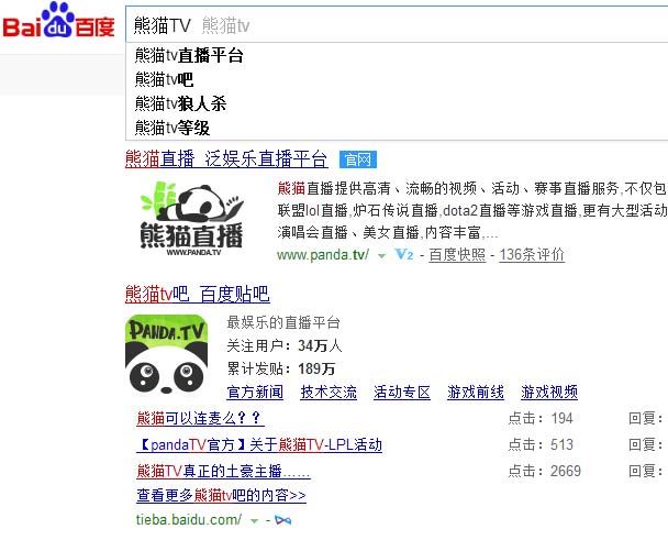 1、打开浏览器,在百度搜索输入熊猫TV,打开官网,点击“全部”