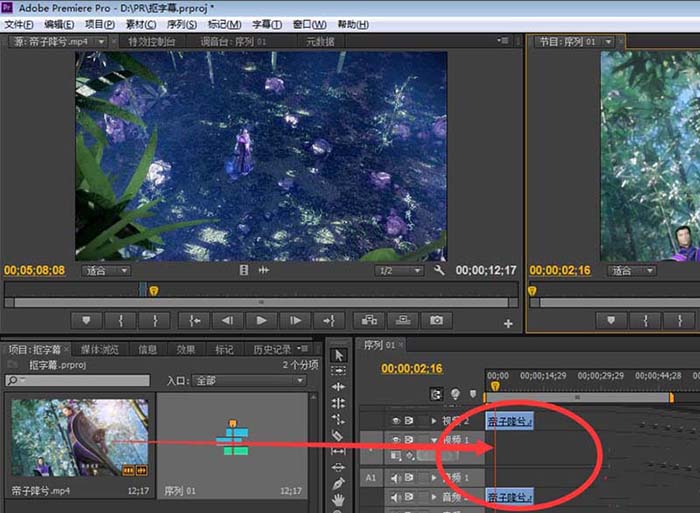 2、把视频直接拖到premiere中;