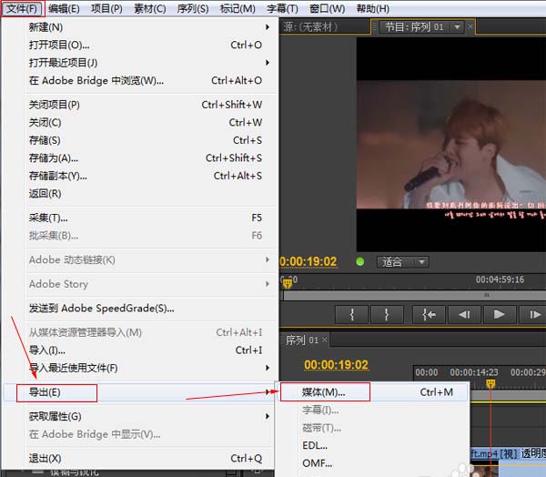 6、重影效果添加完毕后,就可以按空格键播放下视频预览下效果啦,觉得效果还不错就可以保存成视频了。点击菜单栏上的“文件”选择“导出”--“媒体”。