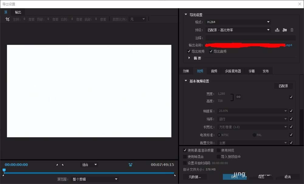 2、主要修改的设置就是红色圈住的地方了。现在主流是使用H.264进行编码,导出MP4文件。各方面都是非常优异的这点可以百度查找一下。首先在右侧的格式选择H.264。