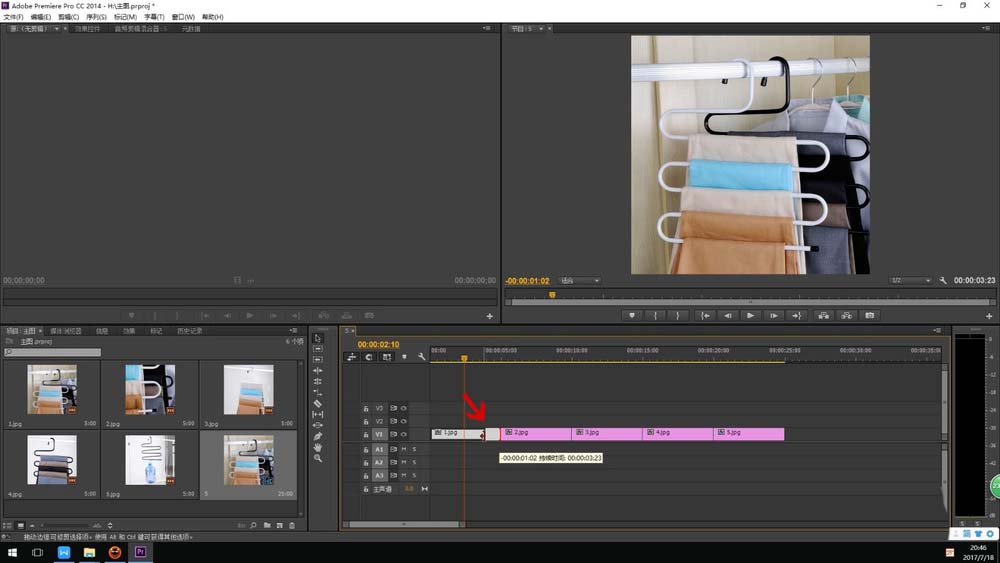 2、把图片直接拖拽到时间线里(会根据我们图的尺寸,产生一个相同尺寸的序列)。
