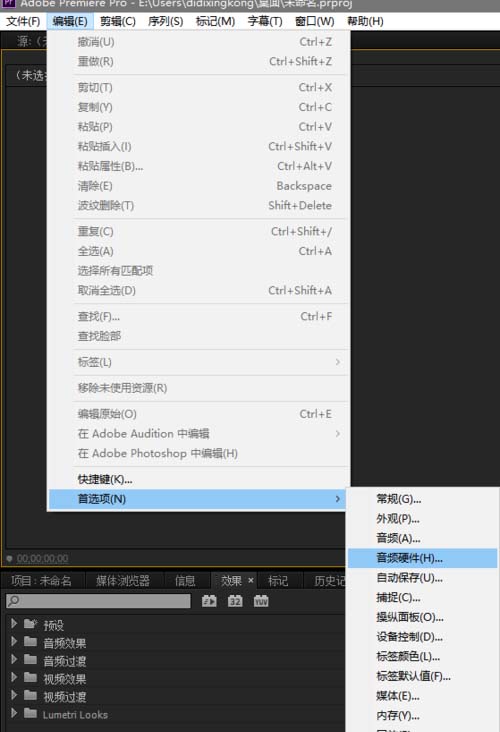1、首先找到编辑--菜单栏--首选项--音频硬件点开