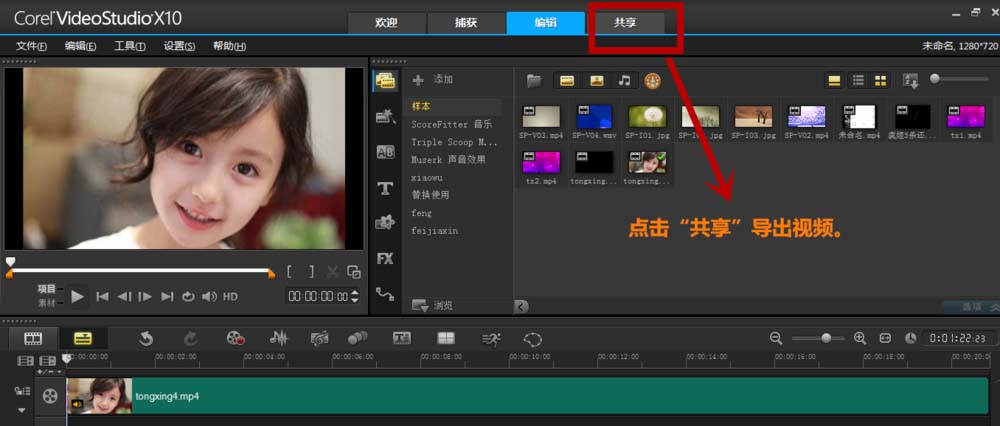4、最后点击“分享”即可导出视频。