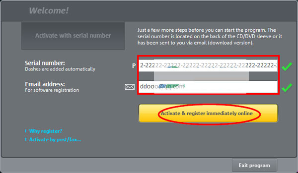 7、在P中填写“2-22222-22222-22222-22222-22222-22222-22222-2222”(一直按过去就可以了),然后填写任意邮箱如:123456@qq.com”,然后再点下面的按钮即可。
