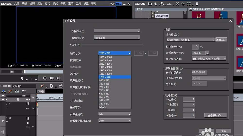 2、根据我们拍摄的视频素材建立新的工程文件,一般是新建为高清尺寸的高清工程。