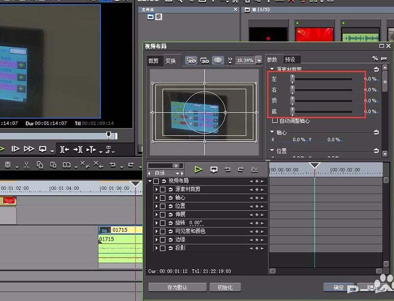 4、打开素材的“布局”命令,快捷键是F7,我们可以通过布局命令菜单中的第一项“原素材裁剪”进行剪裁。