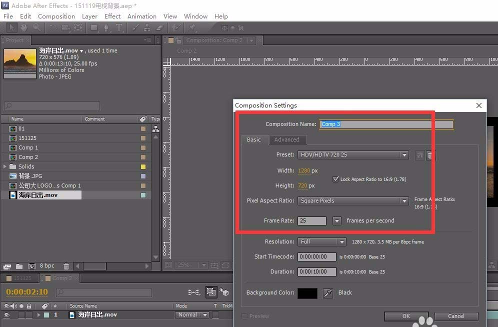 1、首先就是根据我们的实际需要新建合适的工程尺寸,一般是DVD或者是高清尺寸。