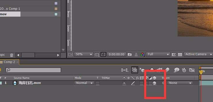 2、把我们的素材拖拽到时间线上,然后打开其“三维”开关。