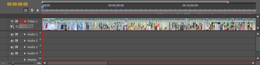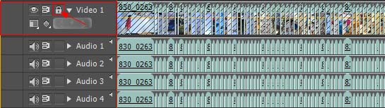 2、点击视频轨道前面的锁住按钮。