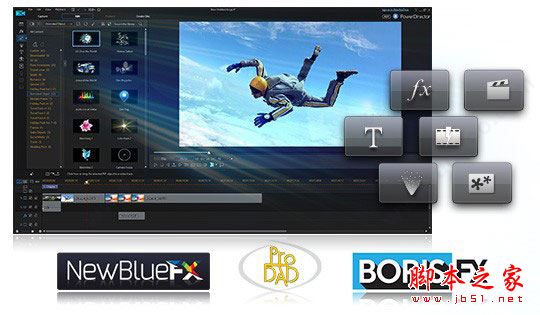 活用NewBlueFX、proDAD和BorisFX(仅支持64位操作系统)等第三方套件,恣意挥洒、延伸你的不凡创意。