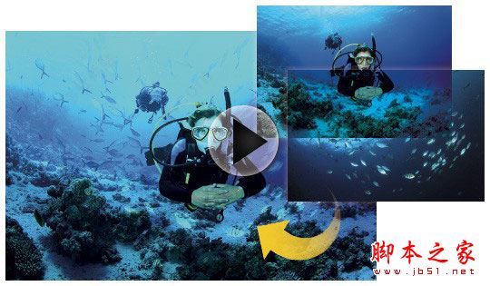 将视频迭在图片或文字中,特效表现更具层次。
