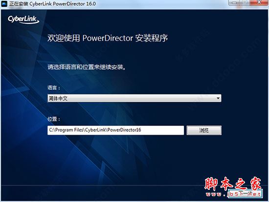 1、运行威力导演16安装程序“Power Director 16.exe”开始安装,选择安装语言和安装目录