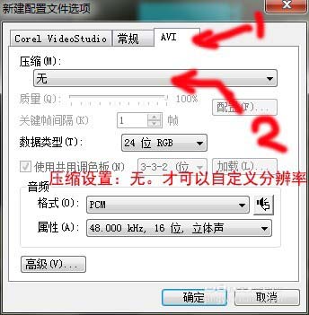 2、压缩,必须选择无才能进行,分辨率的自定义设置,