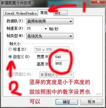 3、由于是竖屏的,所以分辨率的设置,宽度要低于高度,