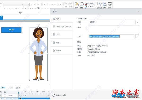 storyline3的界面类似PPT,非常容易使用和操作。同时,具有多种字体、动画以及多样化的页面模板的支持,我们使用它制作课件是,无需从头开始,利用其中优秀的模板能够帮助我们更好的进行课件的制作。其次,它内部嵌入超过4万种的人物、表情和动作的素材,可以有更加丰富的组合,让课件变得更加的有趣生动。