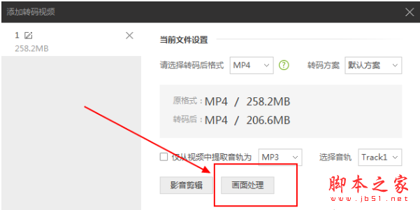 2、添加好后会出现下图界面,在这里打开“画面处理”功能;