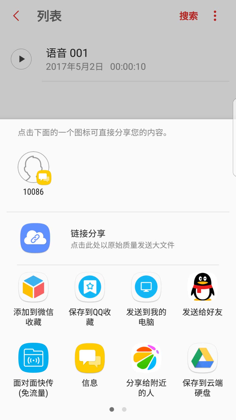 3、然后,我们选择【分享】功能,通过QQ发送到电脑上,这里你也可以通过数据线,把手机的录音拷贝到电脑上