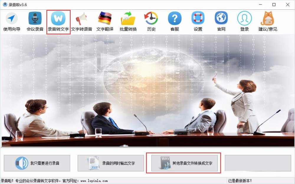 5、运行【录音啦】-选择【其他录音文件转文字】