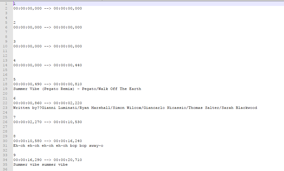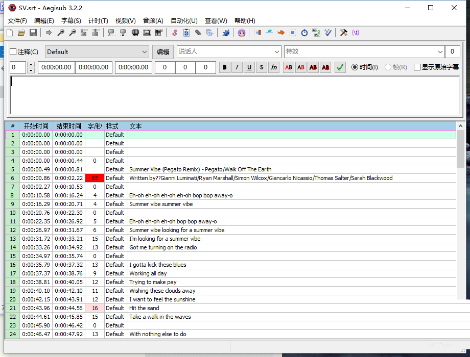 4、用Aegisub打开这个文件,如果发现歌词一句句对上的话就没问题了,这时候在Aegisub上方的文件中选择导出字幕,弹出的框框中我们直接点击导出,其他东西都不要改,格式选择成SRT