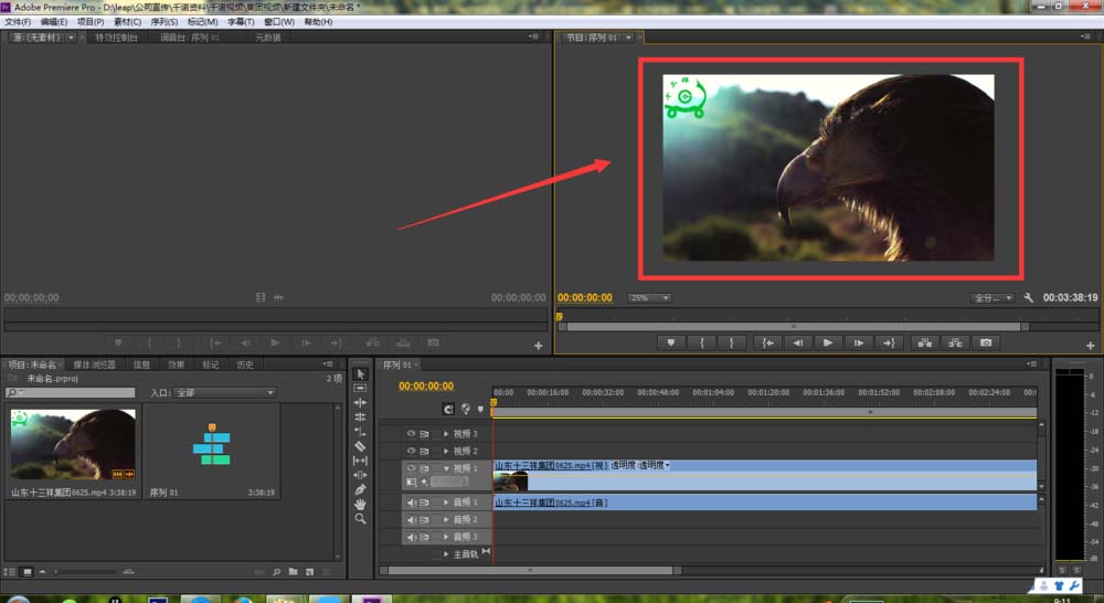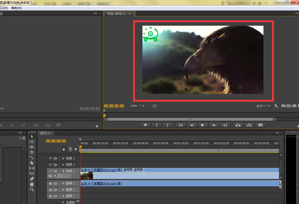 2、将视频拖入时间线之后,在premiere软件的视频预览框区域内会看到要编辑的视频,如图所示: