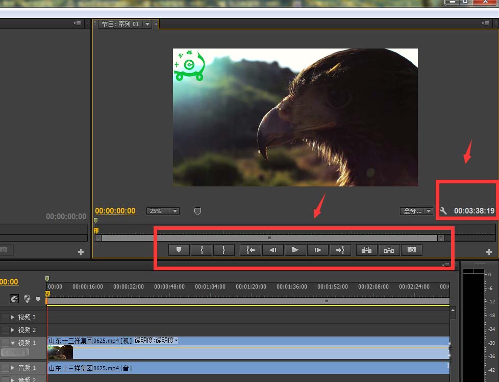 7、在premiere软件中,还有一部分标记菜单按钮和时间显示按钮,我们可以用来调节时间和选择标记节点,如图所示: