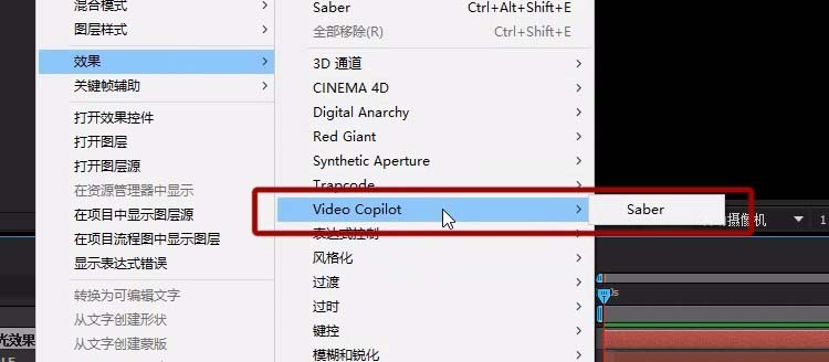 2、右击-效果-Video Copilot-Saber