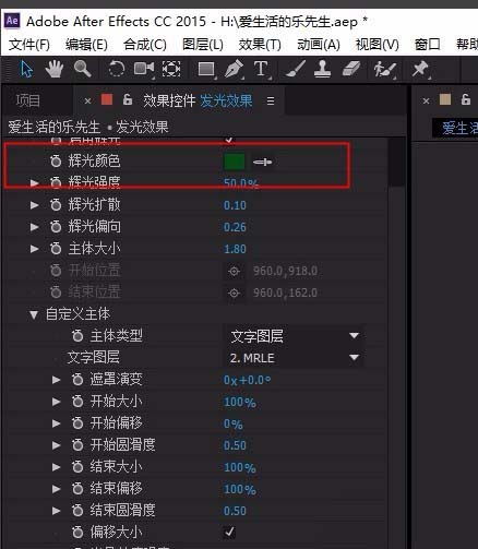 4、预设-可选择多种预设效果,辉光颜色-更换其它颜色,开始偏移这个地点开启前面的小秒表,做关键帧动画