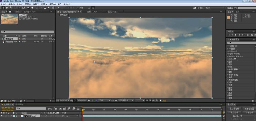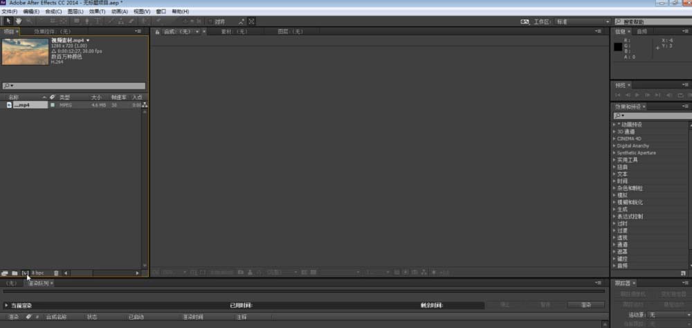 2、然后我们要创建一个合成文件才能处理视频素材,就是鼠标左键按住刚才导入的视频(在“项目”那一栏)拖到下面这个鼠标的位置,就新建好啦