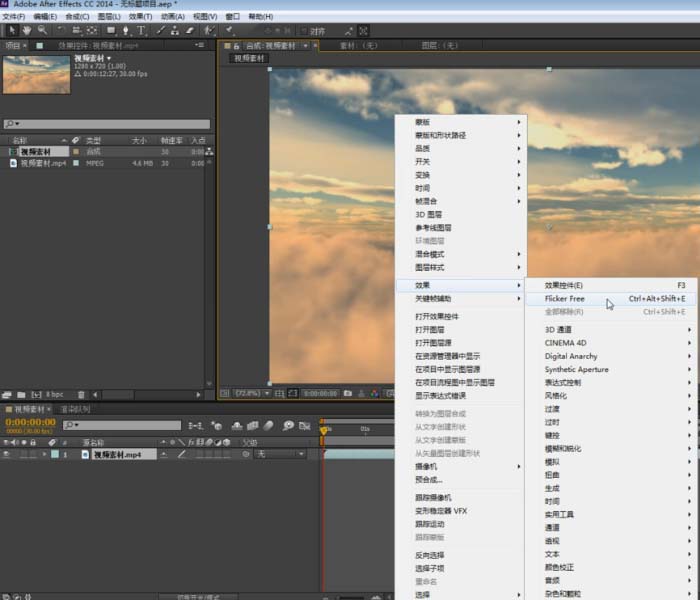 3、右键点击视频,出现这些菜单栏,选择Flicker Free