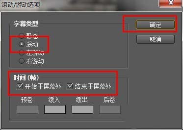 4、点击左上角的“滚动/游动选项”,设置字幕类型和时间。