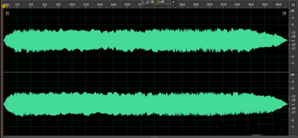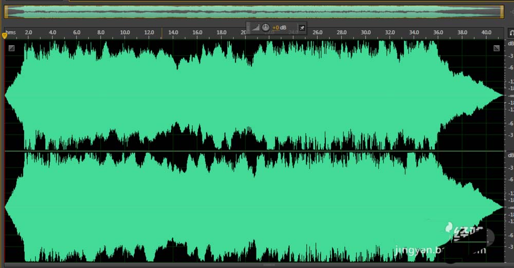 看:波形填满整个空间,音量分贝快达到零{编辑器中显示的音量分贝区间是(-∞,0)},零是最大值,接近零说明声音过大了,而最适宜的音量分贝是(-12,-6)间的。