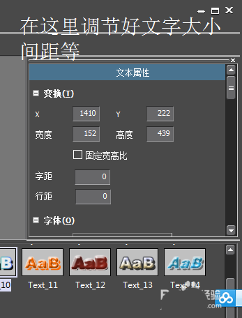 3、在文本属性那里调文字大小等等——自己拖动条浏览一下其他功能;