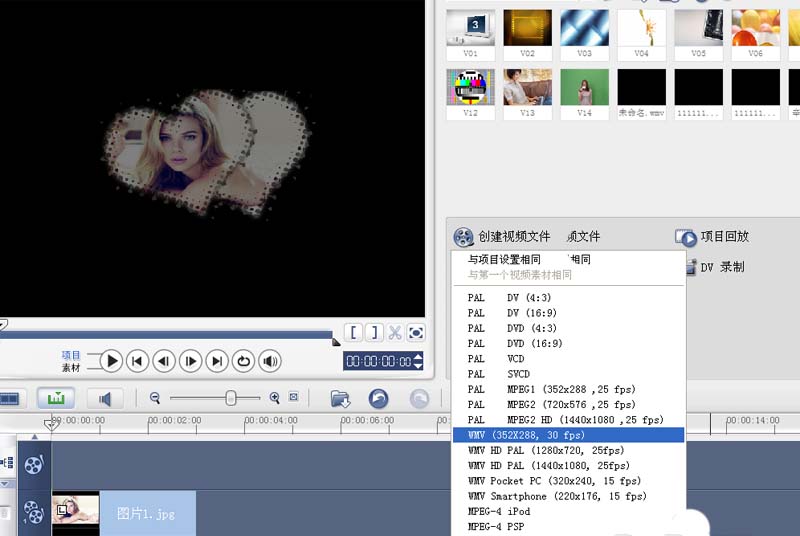 4、接着执行分享-创建视频文件命令,选择一种视频格式。