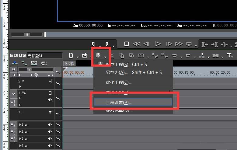4、点击确定进入到EDIUS的编辑界面。我们要想切换到其他尺寸的工程文件时。